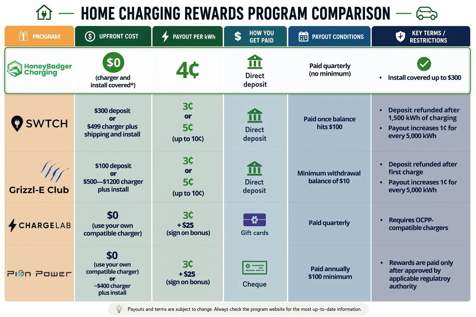 Home Charging Join HoneyBadger’s Home Charging Initiative and earn $0.04 per kWh with quarterly payouts. Sign Up Sign Up